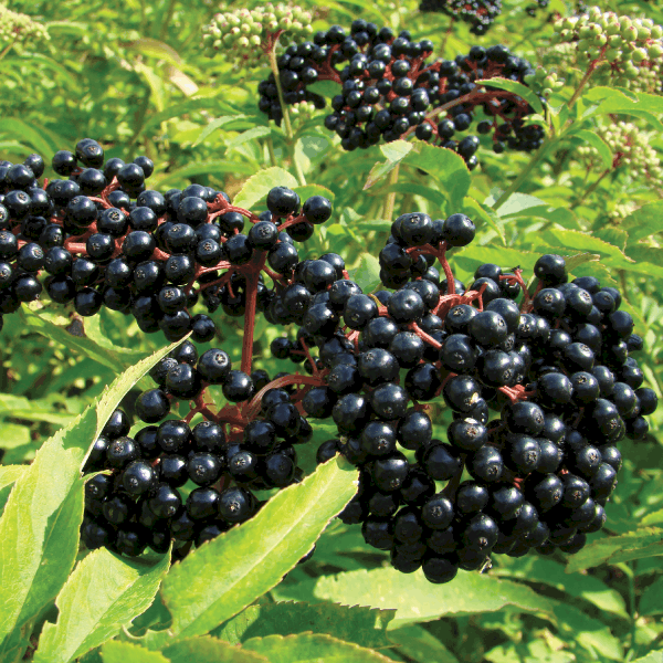 Sambucus in variety: Deciduous shrubs or small trees with pinnate leaves. Produces clutches of small white flowers followed by red, white or black berries. Varieties include Black Lace and Plumosa Aurea.